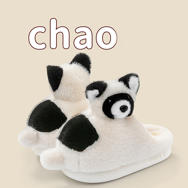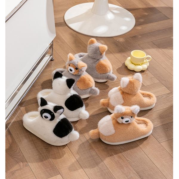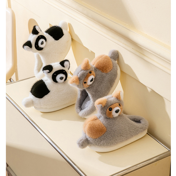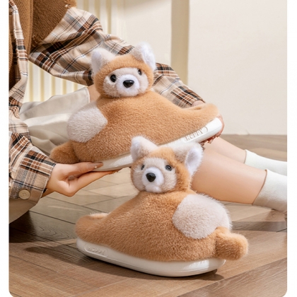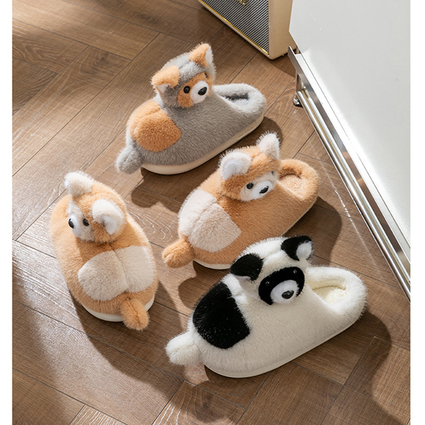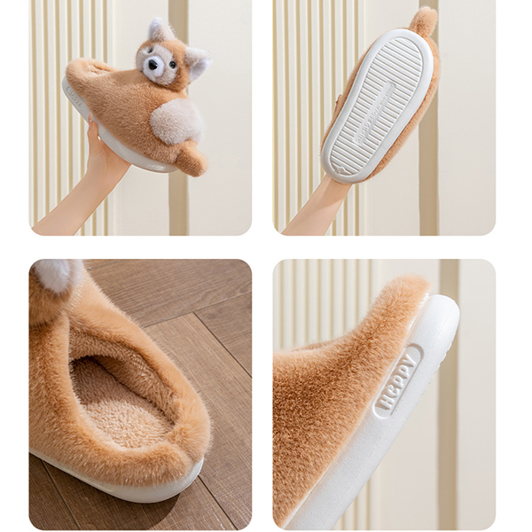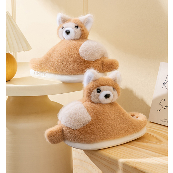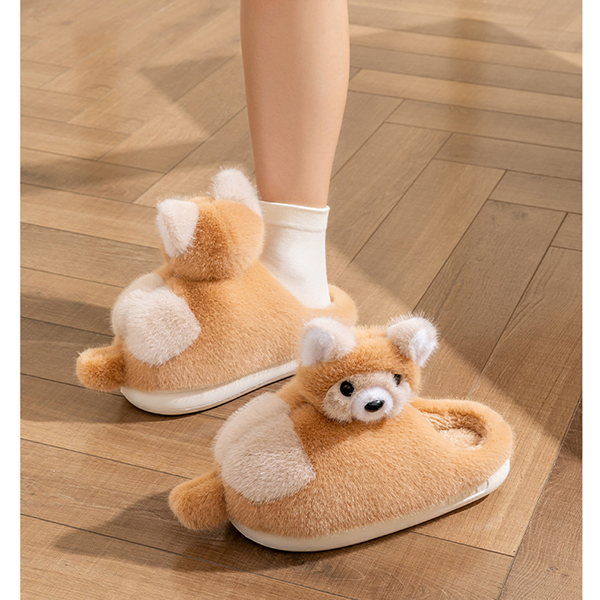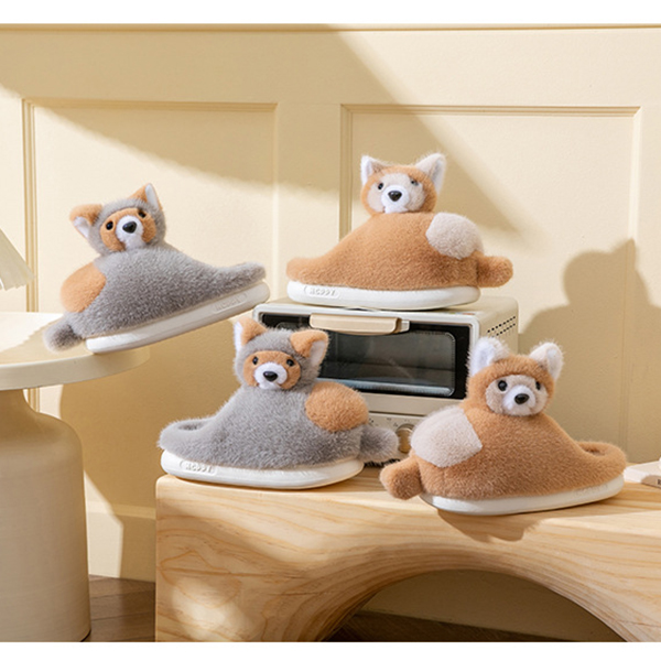 Varmfodrade plyschtofflor med rävmotiv och halkfri sula
