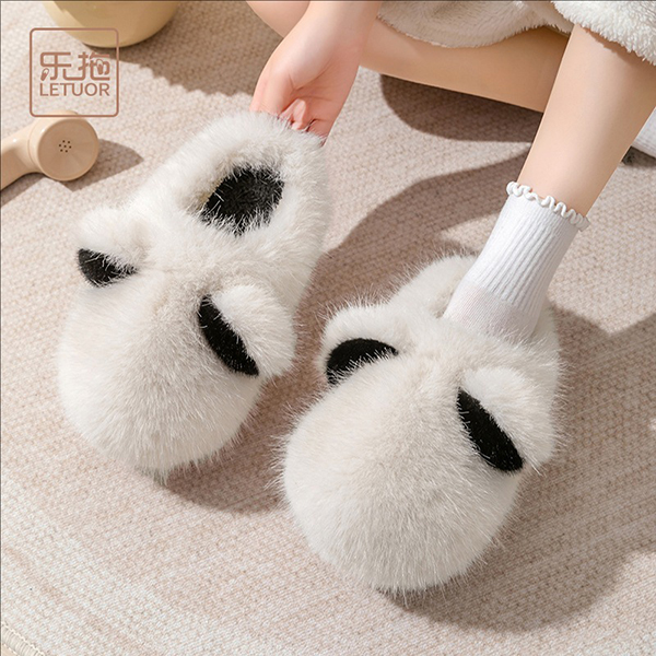 Mysiga varma plyschtofflor med kontrastfärg och gulligt tecknat motiv