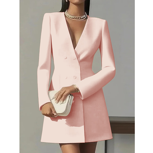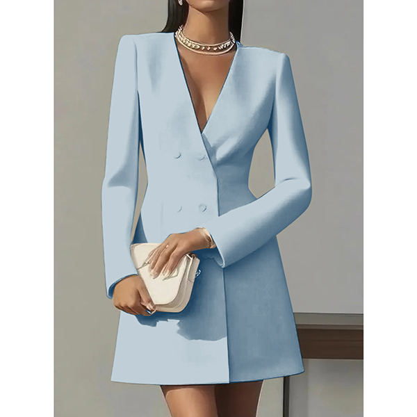 Dubbelknäppt långärmad klänning med V-ringning