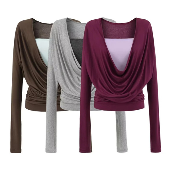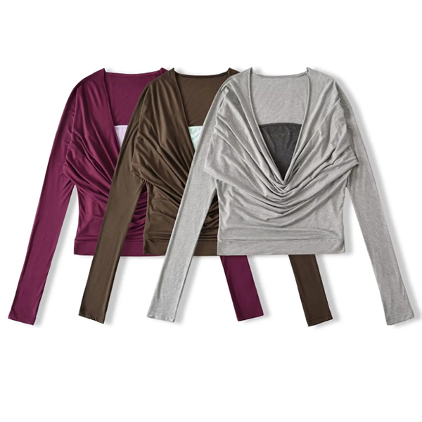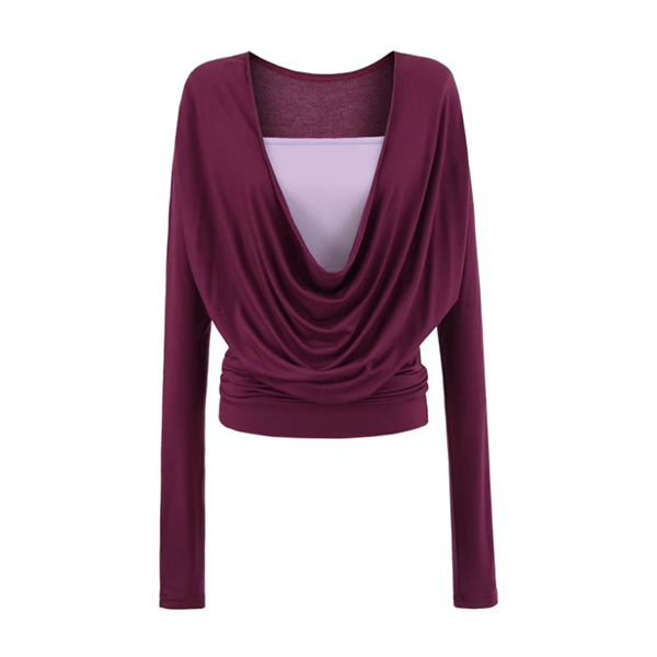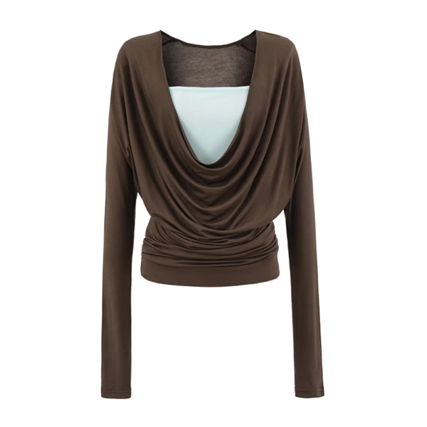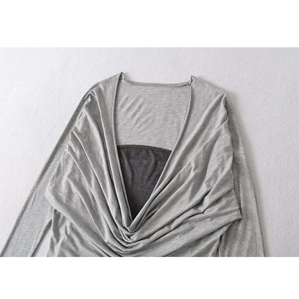 Den här skjortan har en slående kontrastfärg, graciös draperad halsringning och dramatisk fladdermusdesign för en elegant och sofistikerad lager-på-lager-stil. Perfekt för vardagsbruk.