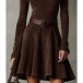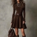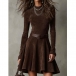 Elegant långärmad A-linjeklänning med rund hals och matchande midjebälte
