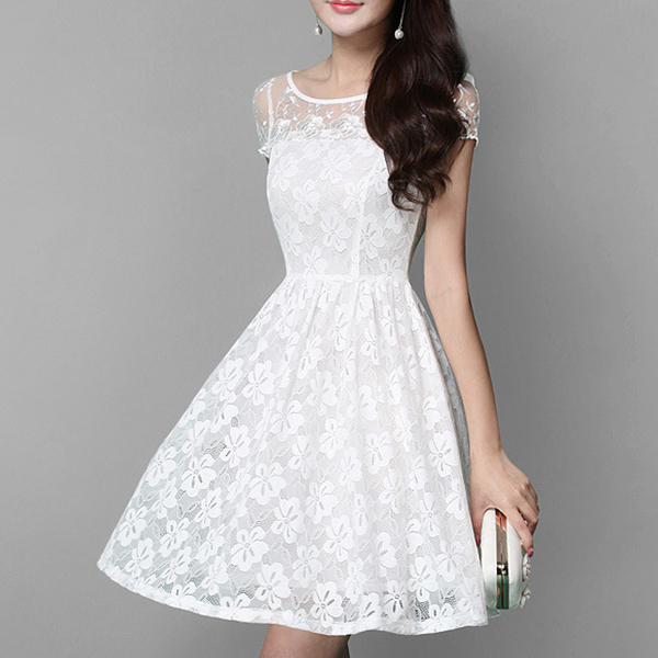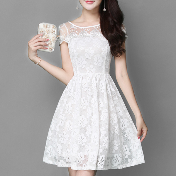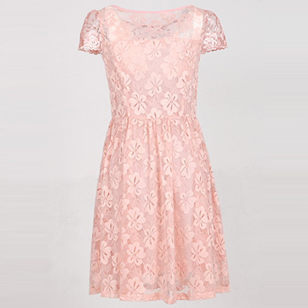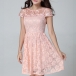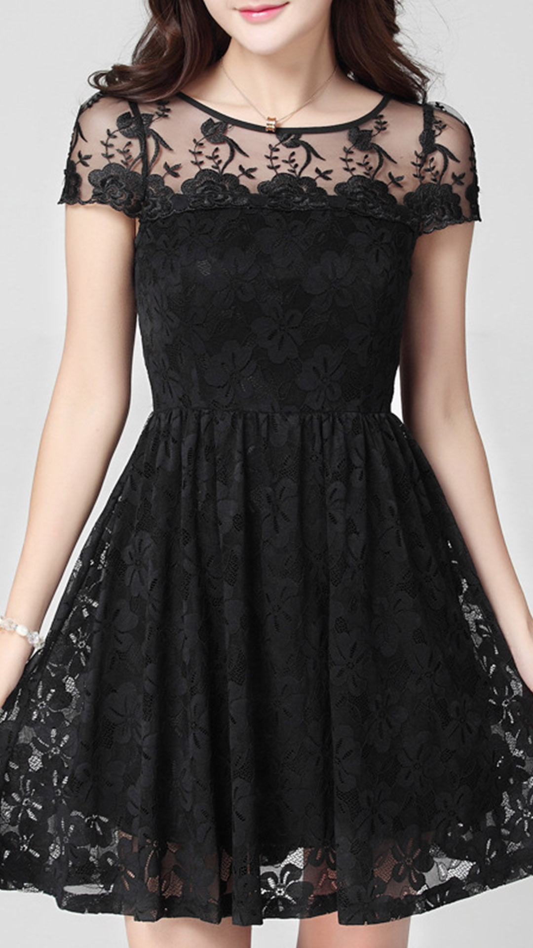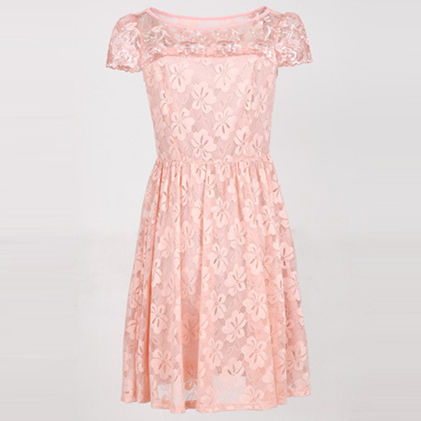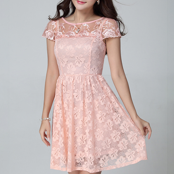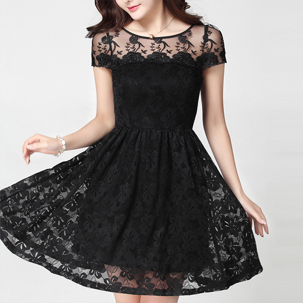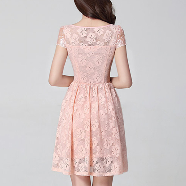 Denna eleganta spetsklänning har en klassisk rund hals och korta ärmar, vilket ger en touch av sofistikering och femininitet till looken. Oavsett om du deltar i ett speciellt evenemang eller en utekväll på stan, kommer denna klänning garanterat att göra ett uttalande och vända uppmärksamheten.