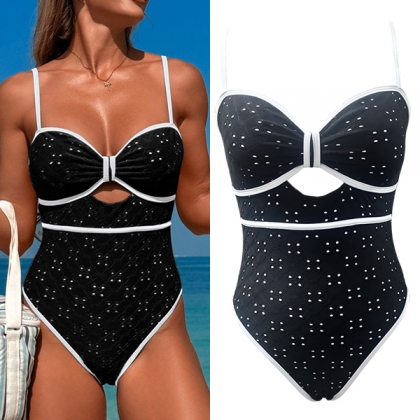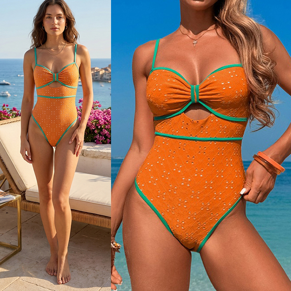 Vintagecharm möter modern elegans – monokini med texturerade, utskurna mönster