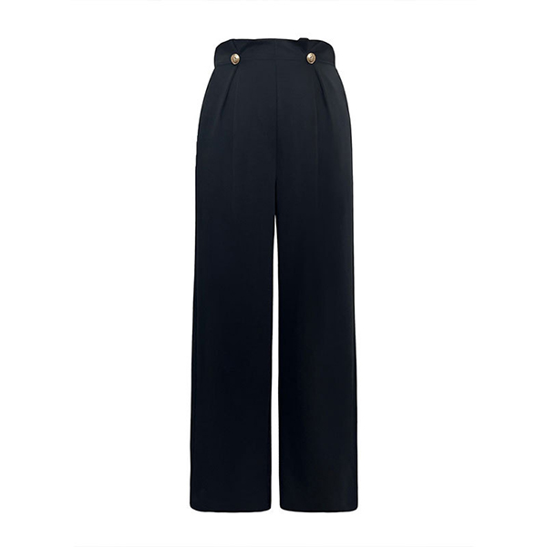 Dessa byxor har en smickrande hög midja, klassisk dubbelknäppning och en tidlös rak silhuett som utstrålar modern, raffinerad elegans. Vill du prova?