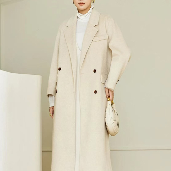 Upplev tidlös elegans med vår exklusiva dubbelknäppta ullkappa – skräddarsydd i en lyxig ullblandning som kombinerar oslagbar värme med lång hållbarhet. De markerade, skårade slagen ger arkitektoniskt intresse och en militärinspirerad silhuett som sticker ut från mängden. Den strukturerade passformen framhäver figuren medan premiummaterialet säkrar en investering för säsong efter säsong. Perfekt för kontoret, formella tillfällen eller vardagspendling när du vill utstråla sofistikerad stil och bestående kvalitet.