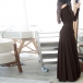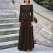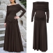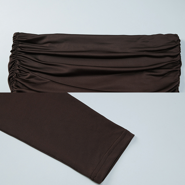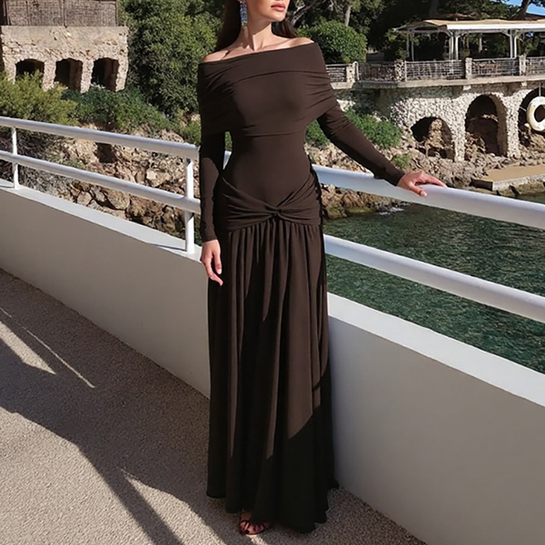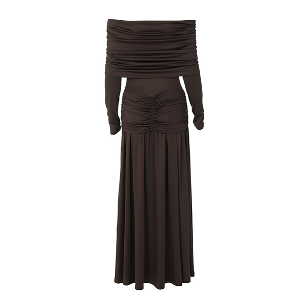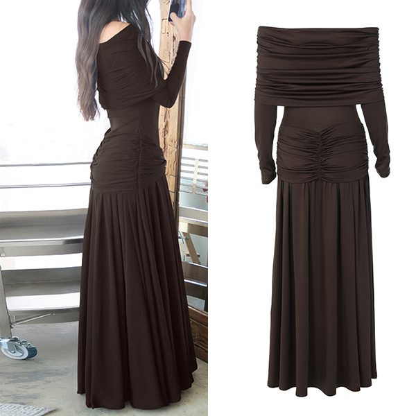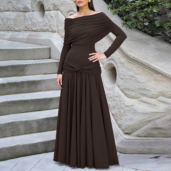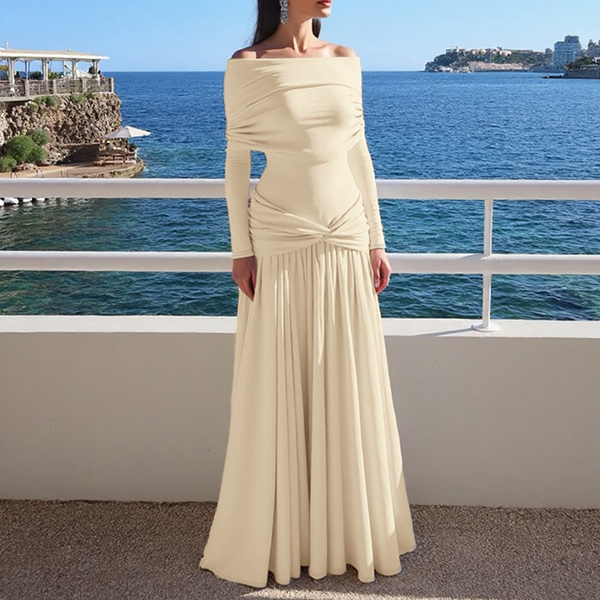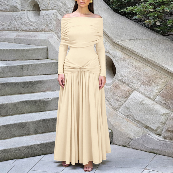 Maxiklänning axelbandslös långärmad med eleganta rynkdetaljer