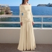 Romantisk off-shoulder-maxiklänning i lätt, högkvalitativ chiffon med sofistikerade rynkor som framhäver bystens kurvor och en följsam A-linjeform som sveper graciöst kring anklarna. Den eleganta designen kombinerar tidlös romantik med modern sofistiker – perfekt för bröllop, sommarfester och galamiddagar. Andningsbart, fukttransporterande material garanterar komfort hela kvällen, samtidigt som du får en oslagbar, lyxig look.