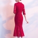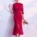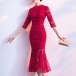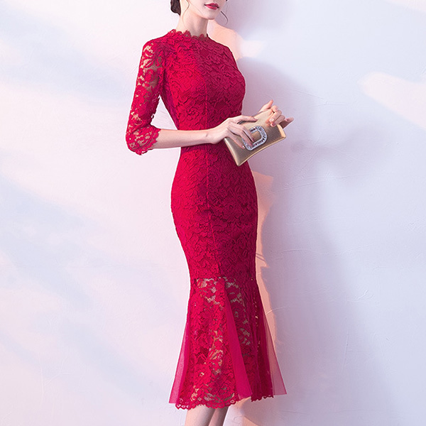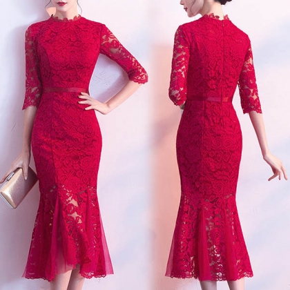 Elegant Red Lace Mid-length Fishtail Party Dress