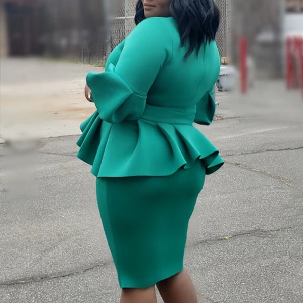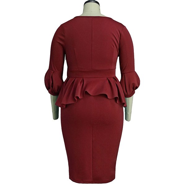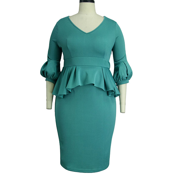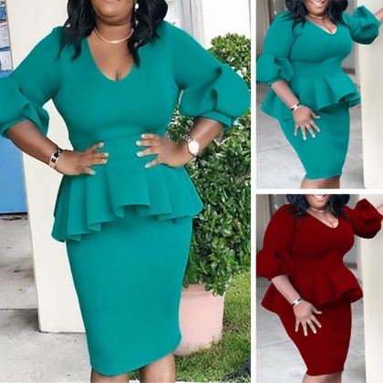 Your wardrobe needs have such an elegant and delicate dress to take you to some formal occasions like business meetings,weekend gatherings and so on. It is outfitted with 3/4 lantern sleeve,v-neck and ruffle design,this piece knows how to portray your elegant and charming side. Let your style bloom in this wonderful dress!