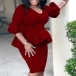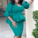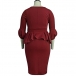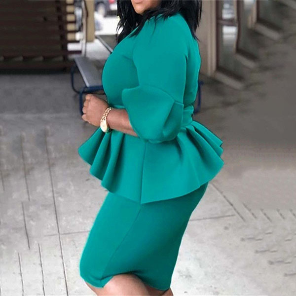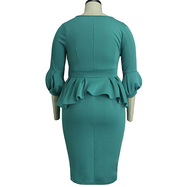 Elegant Solid Color 3/4 Lantern Sleeve Ruffle Dress