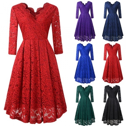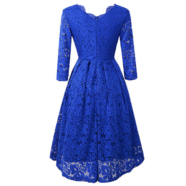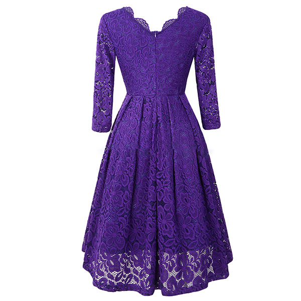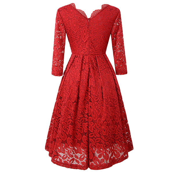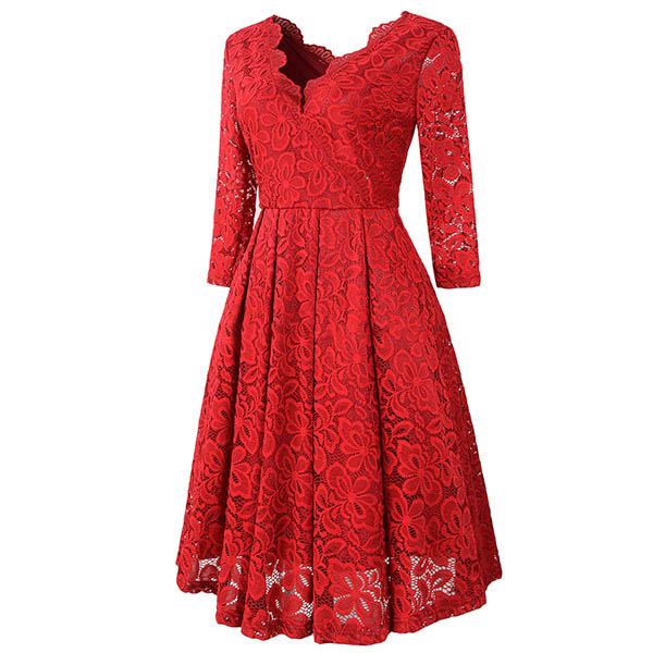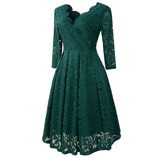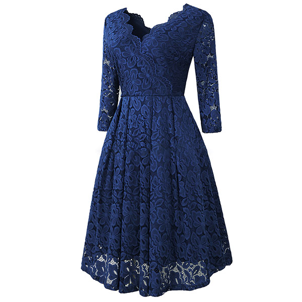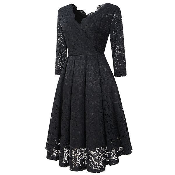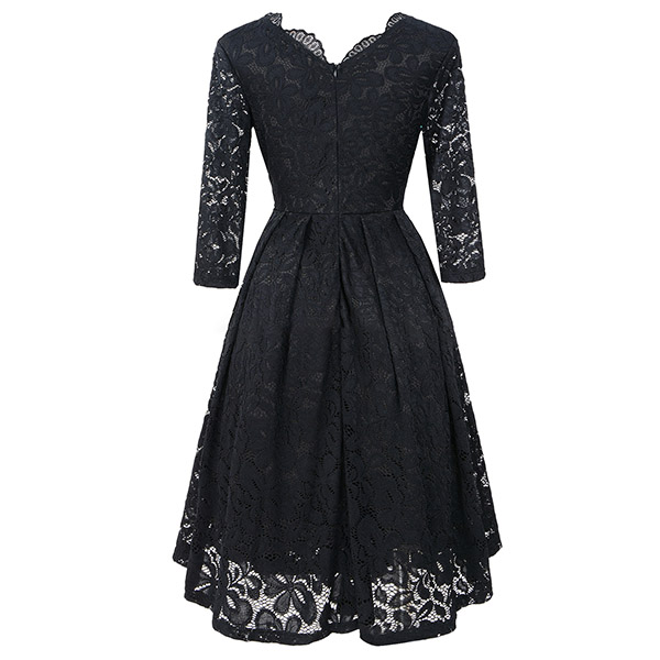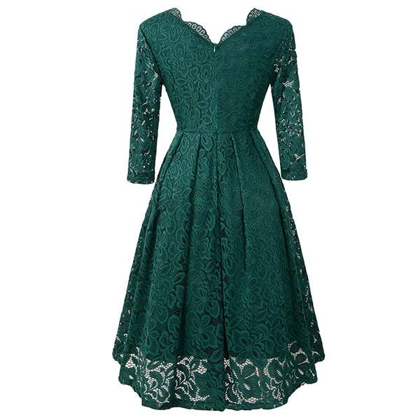 När du vill utstråla din sexiga och feminina sida är den här spetsklänningen ett bra val. Klänningen har en enfärgad design med 3/4-ärmar, v-ringning och hög midja. Med denna klänning kan du se elegant ut samtidigt som du behåller en viss kvavhet. Oavsett om du ska på en middagsdejt eller en helgsamling, är det bara att smyga in i denna klänning för att fånga ännu fler blickar!