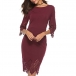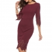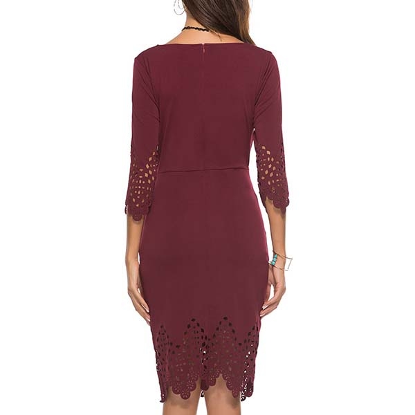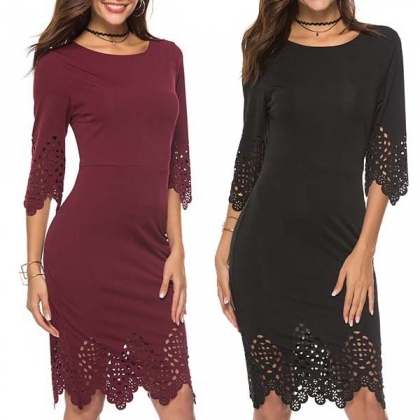 Solid color style,finished with 3/4 sleeve,round neck and a fit silhouette,this dress can