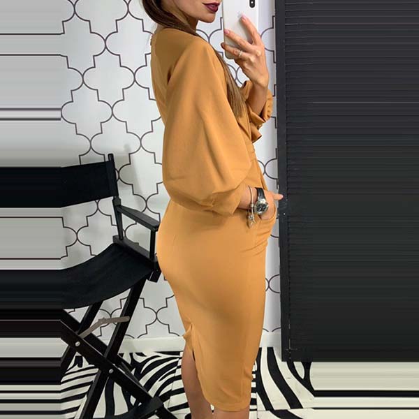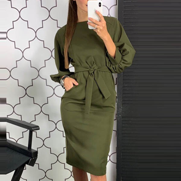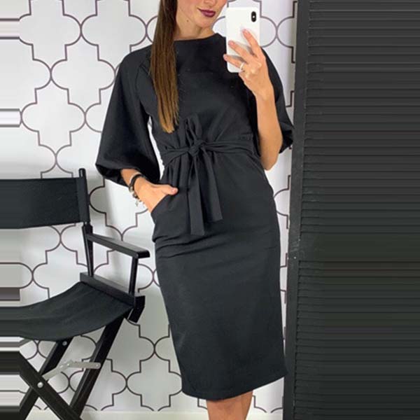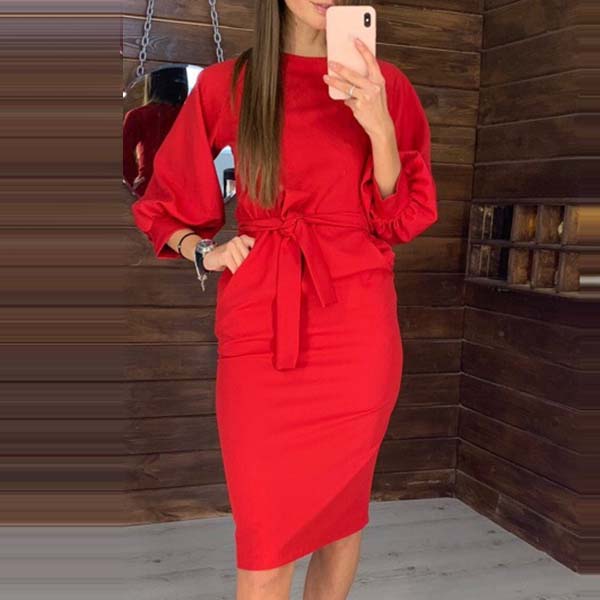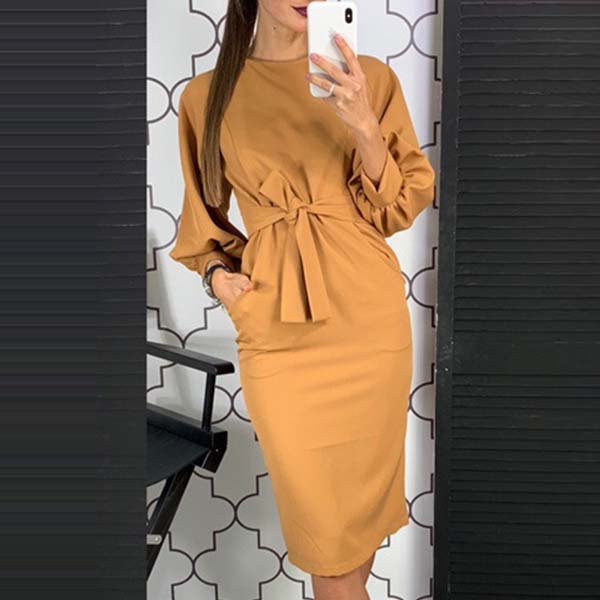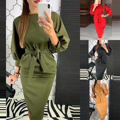 Looking for a dress for your dinner dates or weekend gatherings? Then we suggest you this piece! It comes with a solid color,which can lend you a dash of elegant and generous vibes,while the fit silhouette design can portray your slender figure. Moreover,the lantern sleeve and waist strap design will make this piece more attractive.