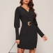 Elegant Solid Color Lantern Sleeve V-neck Slim Fit Dress