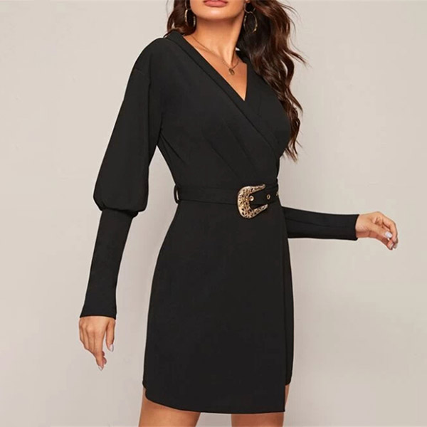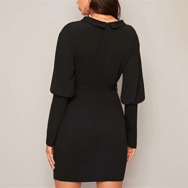 Looking good and elegant is never hard for you if you have this delicate dress in your team. The v-neck and unique lantern sleeve design will boost its entire charm,while the fit silhouette design will portray your slender figure. This is a dress which is fit for different occasions. So why not take interest in it?