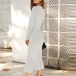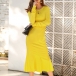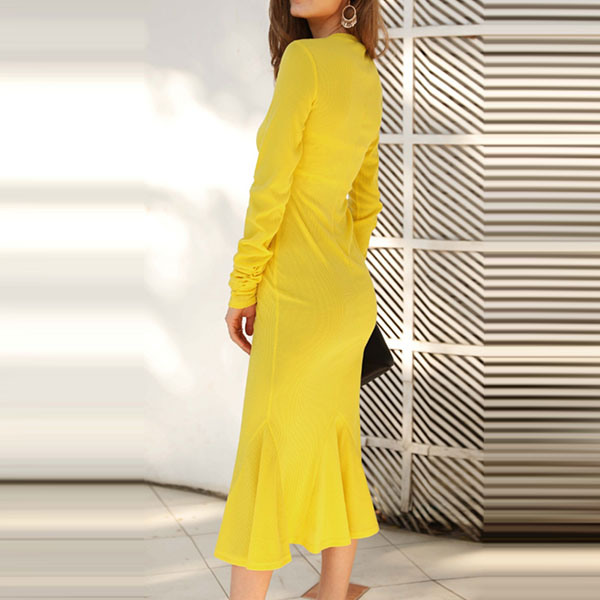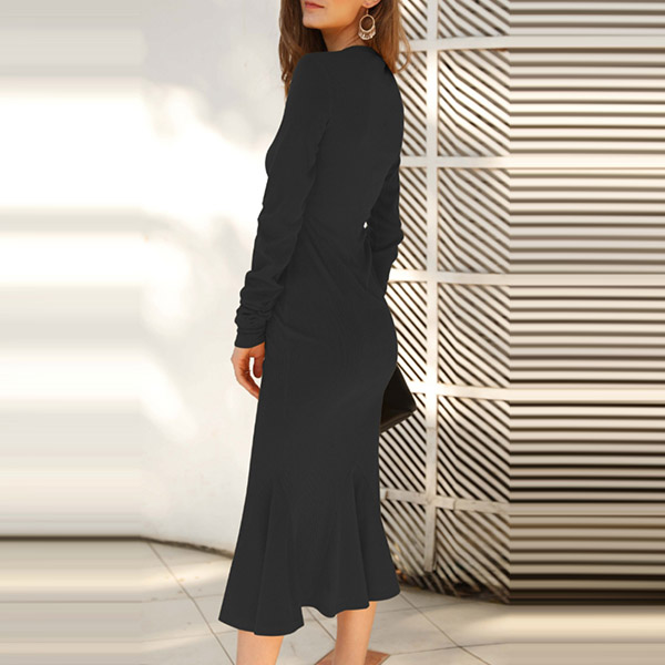 Elegant Solid Color Long Sleeve Round Neck Fishtail Hem Dress