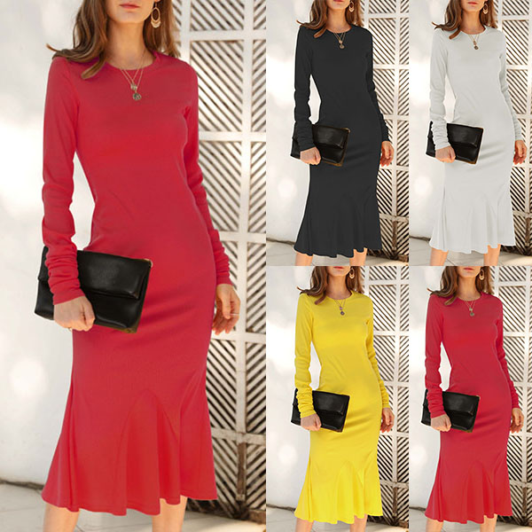 It is an easy thing to portray your elegant and charming image through this delicate dress. Features a solid color,finished with long sleeve,round neck,fishtail hem and a fit silhouette,this is a dress which can take you to different occasions.