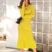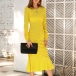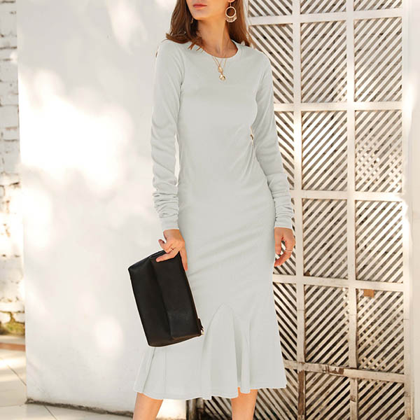 Elegant Solid Color Long Sleeve Round Neck Ruffle Hem Slim Fit Dress