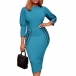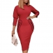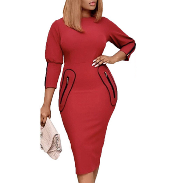 Elegant Solid Color Long Sleeve Round Neck Side-zipper Slim Fit Dress