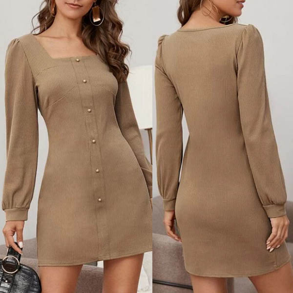 Looking for a dress which can take you to different occasions? Then make your eyes focused on this dress! It comes with a solid color,finished with long sleeve,square collar and front-button design,this dress knows how to keep you comfy while it portray your elegant and charming image.
