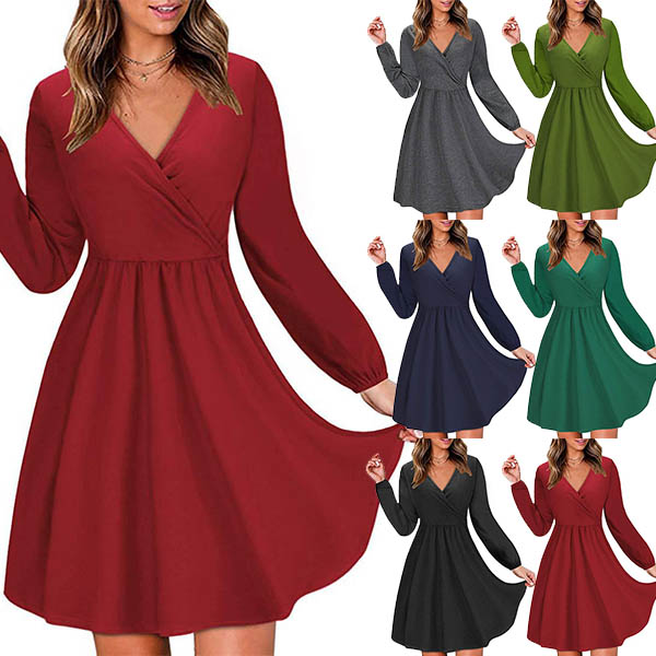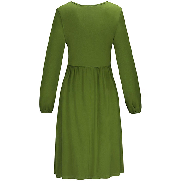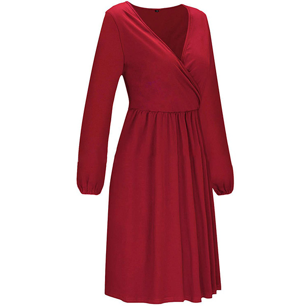 It is an easy thing to portray your elegant and charming image through this delicate dress. Solid color style,finished with long sleeve,v-neck and high waist design,this dress can take you to different occasions. So why not introduce it to your wardrobe?
