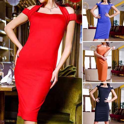 This bodycon dress, with solid color, off shoulder and halter design, would lead your boyfriend's rapid
