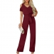 Elegant Solid Color Open-shoulder V-neck Self-tie Jumpsuit