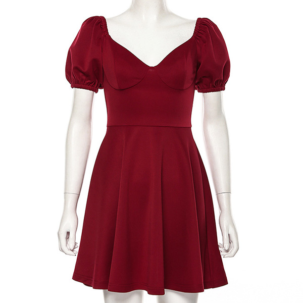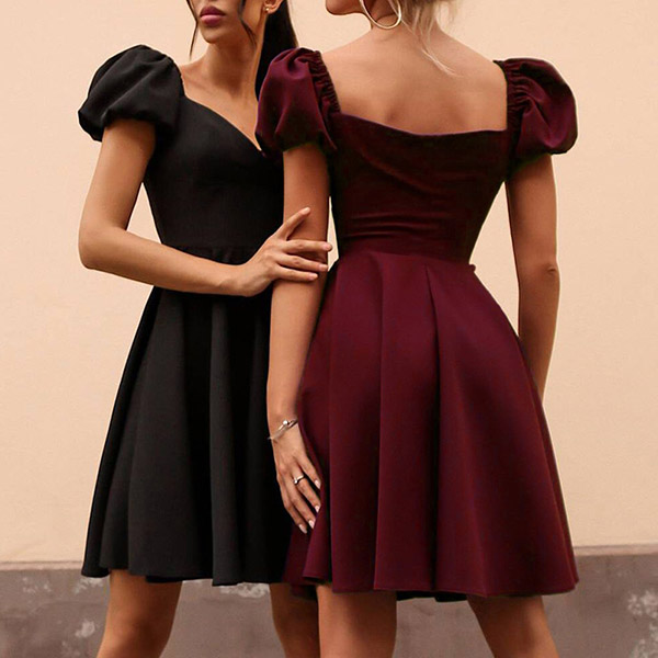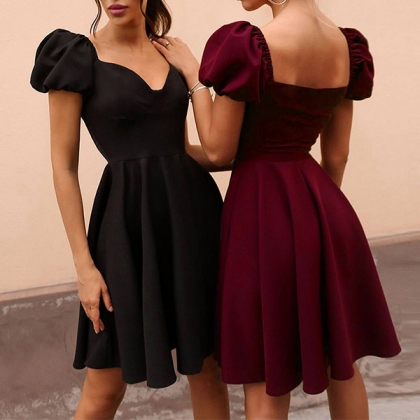 Every girl has dreamt of being a fairy tale princess, so let this elegant and delicate dress grant your wish. Boasts a solid color,the v-neck and puff sleeve design are the highlights,which can perfect exude your femininity. No matter for your night dating or daytime out,this dress can be a wise choice.