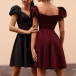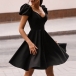 Elegant Solid Color Puff Sleeve V-neck High Waist Dress(It falls small)