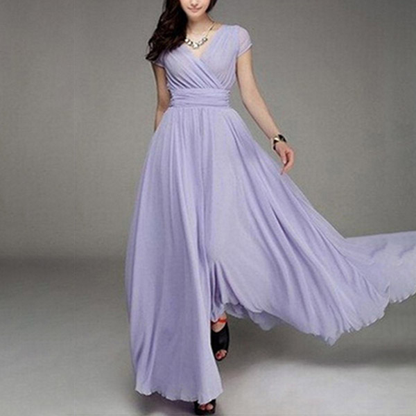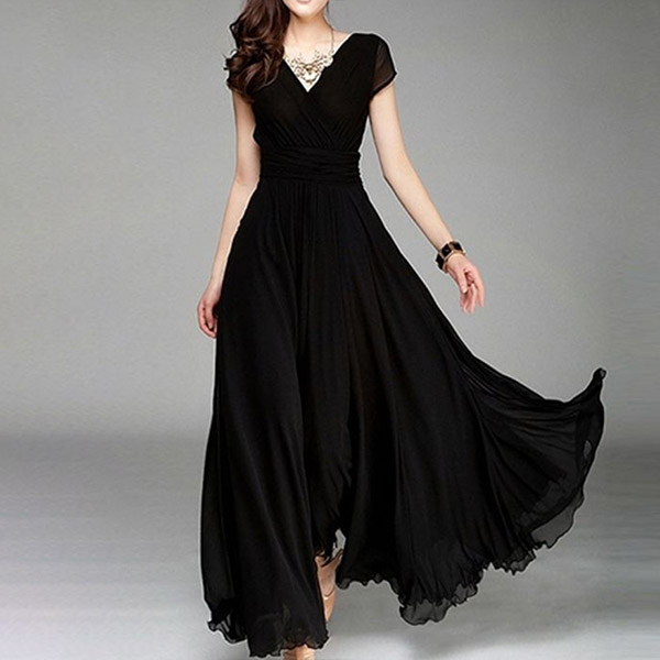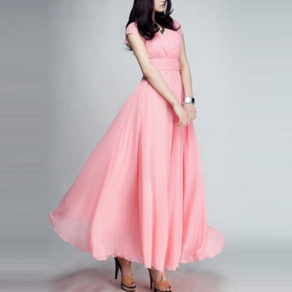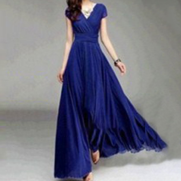 It is an easy thing to portray your elegant and charming image through this delicate dress. Solid color style,finished with short sleeve,v-neck and high waist design,this dress can portray your slender figure while it exudes your style and charm. This is a dress which can fit for different occasions. So why not buy one?