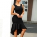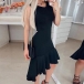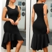 Looking for a dress which can take you to different occasions? Then look no further than this piece! It comes with a flattering black tone,with sleeveless,round neck and an irregular fishtail hem,delicate yet charming. Simply matching with your favourite heels and clutch,then you can look elegant and charming enough!