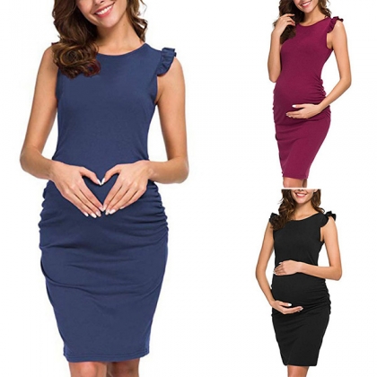 Elegant Solid Color Sleeveless Round Neck Maternity Dress