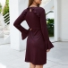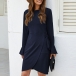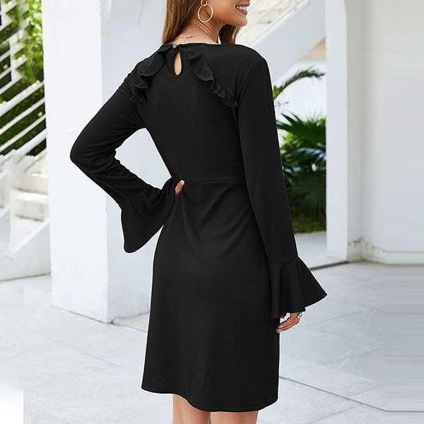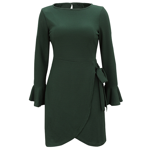 Elegant Solid Color Trumpet Sleeve Round Neck Lace-up Dress