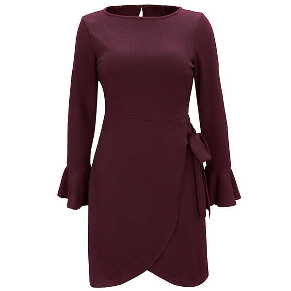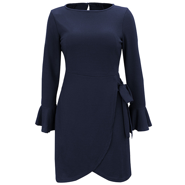 It is an easy thing to portray your elegant and charming image through this delicate dress. It boasts a solid color,finished with trumpet sleeve,round neck and an irregular hem,this piece knows how to exude your charming feminine appeal. Perfect fit for your dinner dates and weekend gatherings.