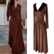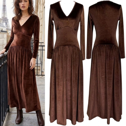 Denna sofistikerade klänning har en smickrande V-ringning, en bekväm hög midja och eleganta veck som ger en modern och stilfull framtoning. Perfekt för eleganta tillfällen, sofistikerad stil eller modern formell klädsel. Finns i flera färger.