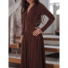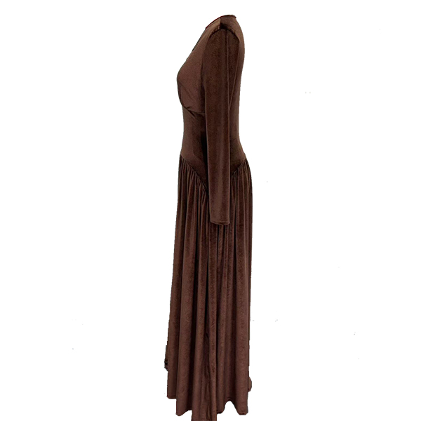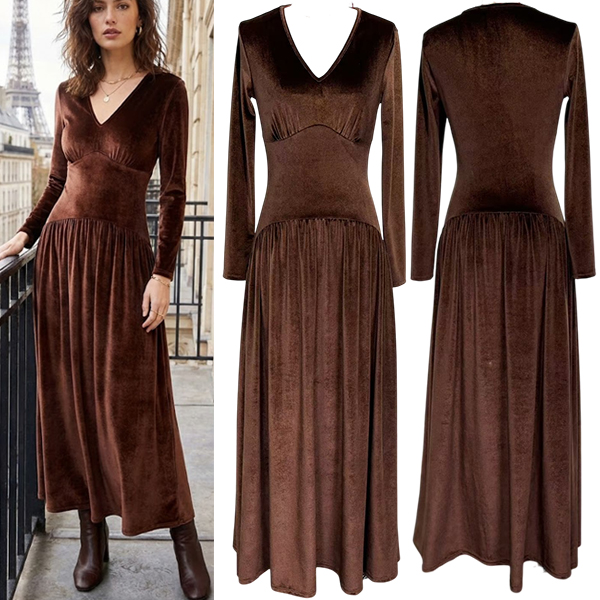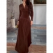 Maxiklänning elegant enfärgad V-ringad, långärmad och högmidjad med rynkdetalj