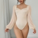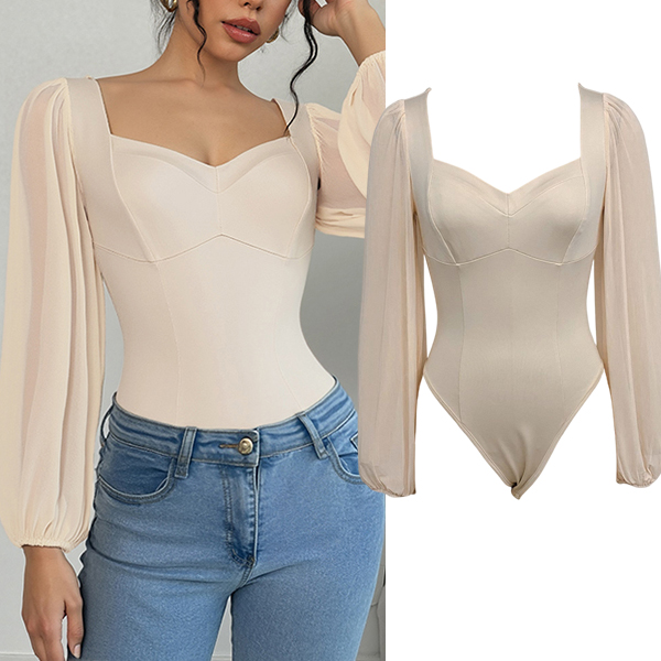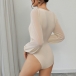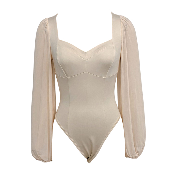 Enfärgad meshjumpsuit med fyrkantig halsringning, långärmad och figurnära passform