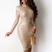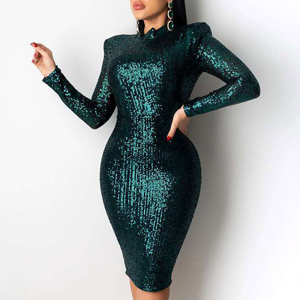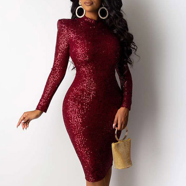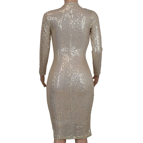 When stepping into a cocktail party with this dress,you can easily be the focus! The sequin details make it look so shinning and eye-catching,while the fit silhouette design will portray your slender figure. For your fancy events,this little stunner can be a good partner!