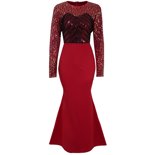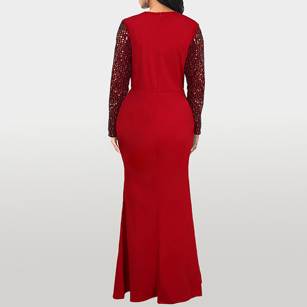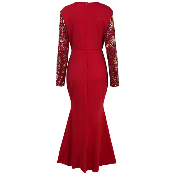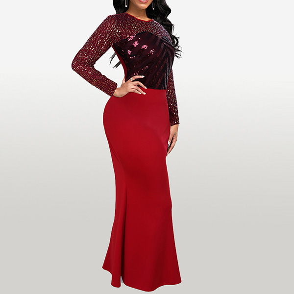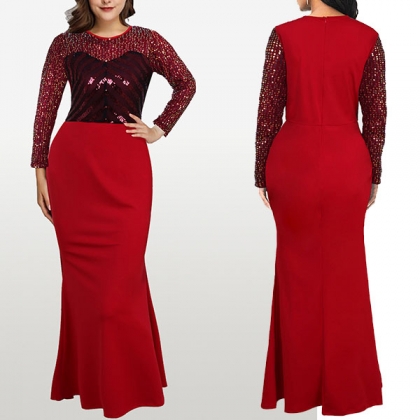 Elegant Style Long Sleeve Round Neck Sequin Spliced Party Dress