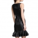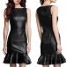 Elegant Style Sleeveless Round Neck Ruffle Hem Slim Fit PU Leather Dress