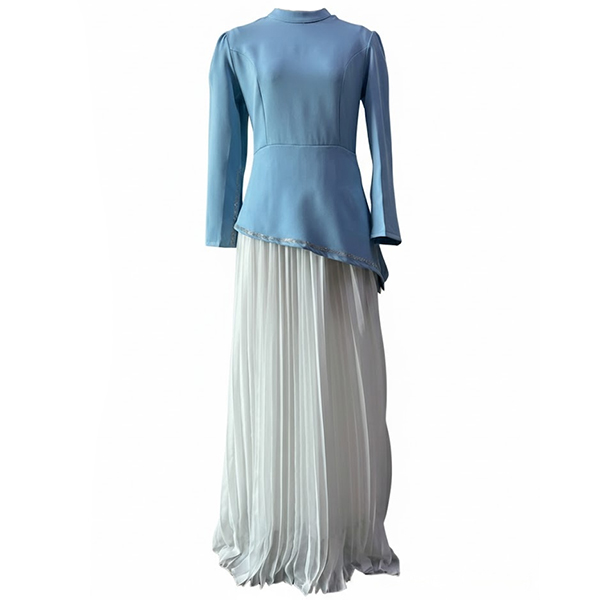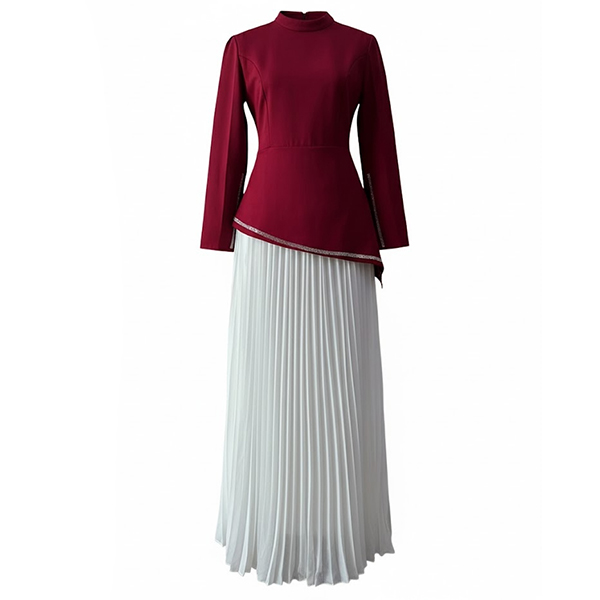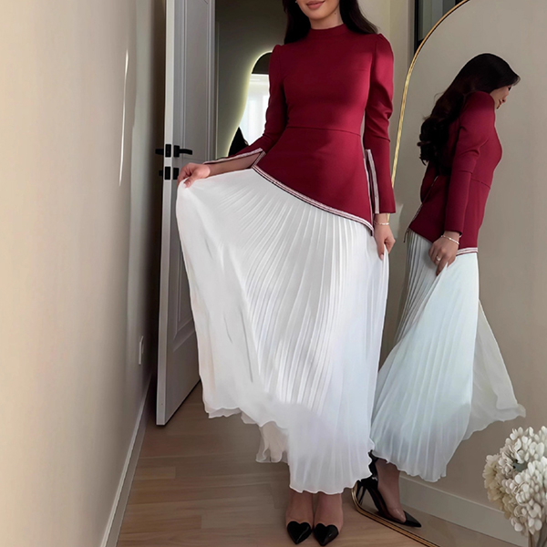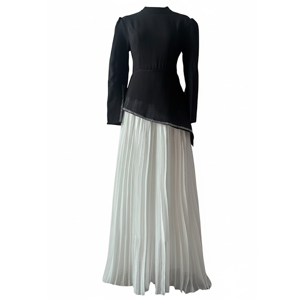 Tvådelat set i bohemisk-romantisk stil med fin knytning baktill, asymmetrisk skjorta med oregelbunden fåll och graciös, veckad maxikjol. Lätt, andningsbart material som behåller formen och framhäver midjan för en smickrande silhuett. Perfekt för både vardag och fest – kombinera med klackar och statement-smycken för en exklusiv, sofistikerad look. Finns i flera säsongsbetonade färger, är maskintvättbart och skrynkelresistent för enkel, stilren elegans.