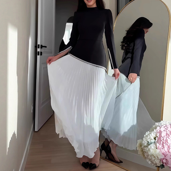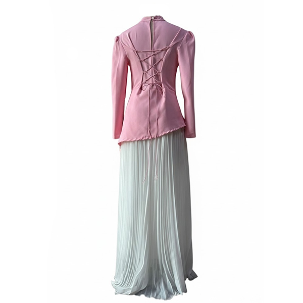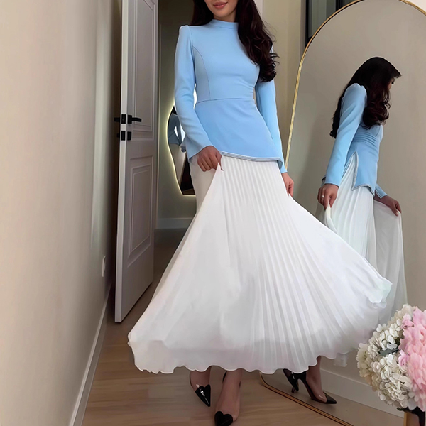 Tvådelat damset: elegant skjorta med snörning baktill och veckad maxikjol