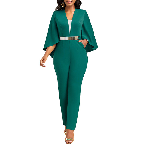 Elegant V-ringad Rynkad Fladdermusärm Högmidjad Jumpsuit