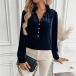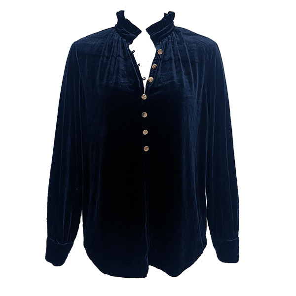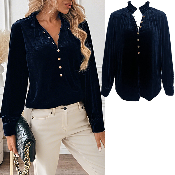 Enfärgad sammetsskjorta med elegant V-ringning