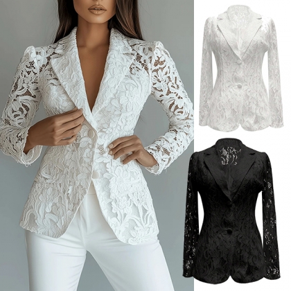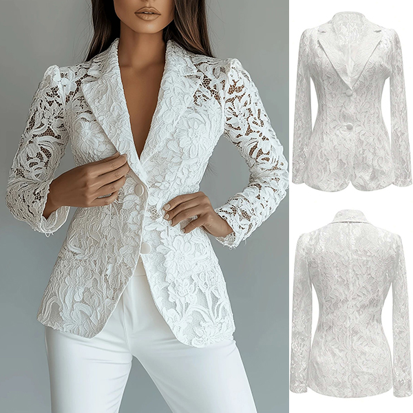 Damkavaj i smal passform med broderade kronbladsutskärningar och mjukt foder
