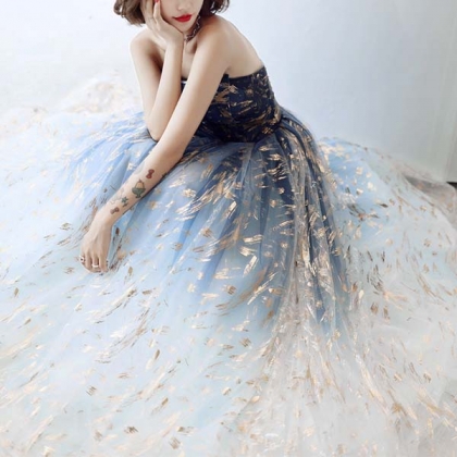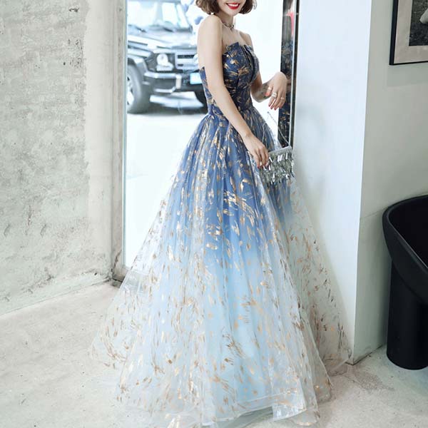 Embroidered Slim Off Shoulder Long Strapless Party Dress