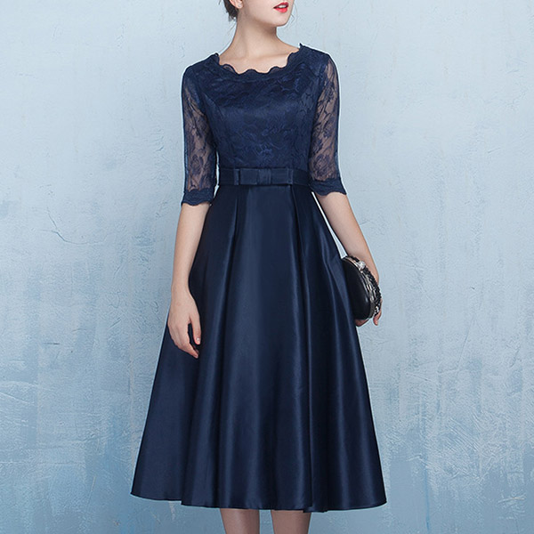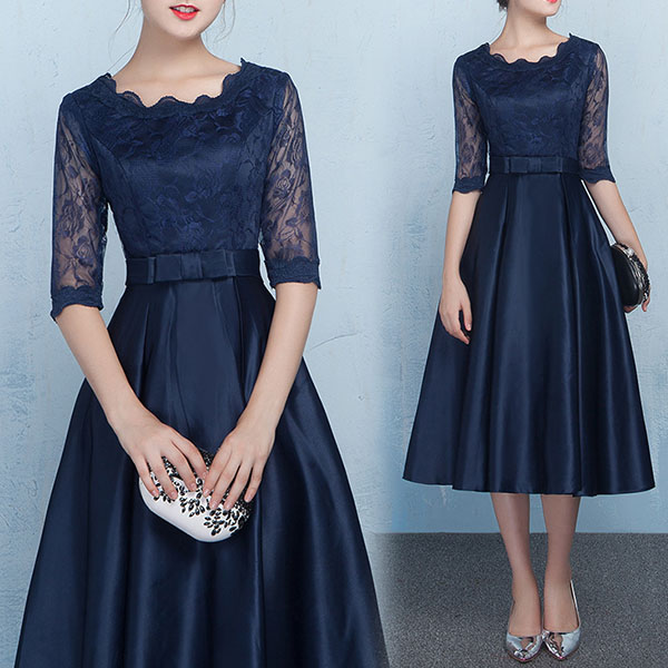 Evening dress new mid-length dress fashion mid-sleeve dress