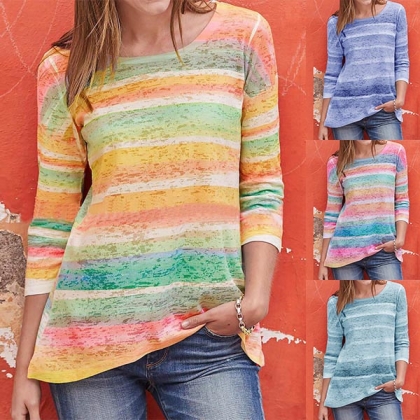 For your weekend time,you deserve to feel laid-back and relaxed. So let this t-shirt give you that feeling. The colorful striped design makes this piece look so stylish and eye-catching. Finished with 3/4 sleeve and round neck,this t-shirt that exudes cozy and stylish vibes is worth to have a place in your wardrobe.
