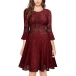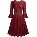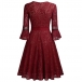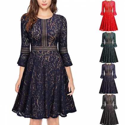 Fashion 3/4 Trumpet Sleeve Round Neck High Waist Lace Dress