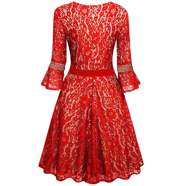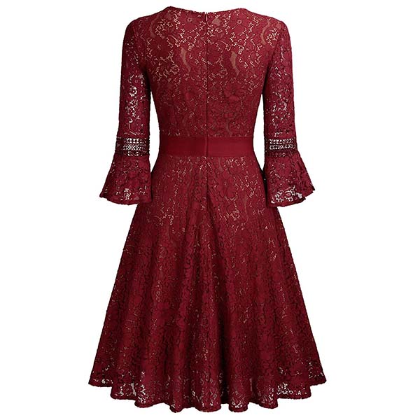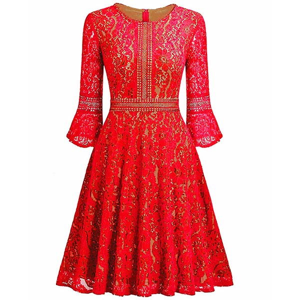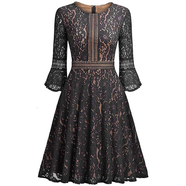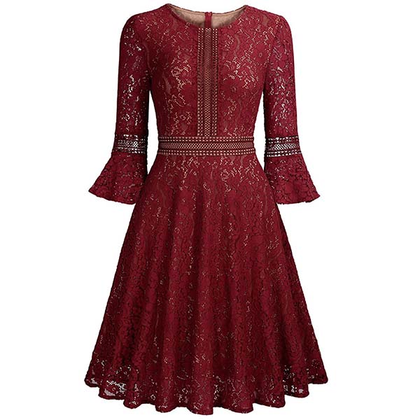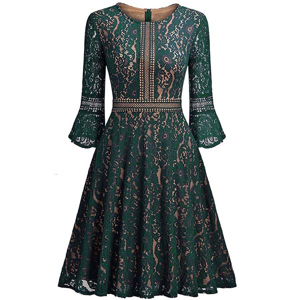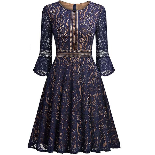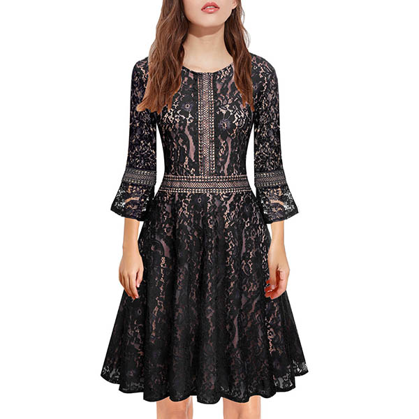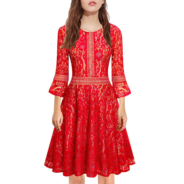 Let your style make the ultimate statement by wearing this beautiful lace dress. It is finished with 3/4 trumpet sleeve,round neck and high waist design,this dress knows how to exude your stylish and feminine side. From your daytime out to night dating,this dress can give you a perfect transition.